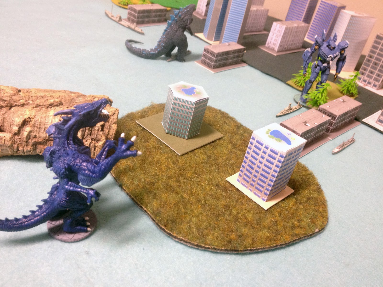 We randomly determined what we'd use. In terms of monsters, Caesar got the slow but tough Mogul, Satvik got the multi-armed horror Ashura and I got Godzilla (portrayed by a newly printed model of the 2014 version).