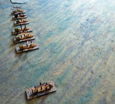 And so the stage was set for another game of Galleys & Galleons, using some of the galleys I finished the other day (as well as other I made the other week).