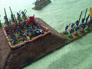 The infantry redoubt. The artillery piece in it represents the additional weaponry the scenario specifies. This pretty much fires the same as an infantry unit, making each redoubt a deadly opponent.